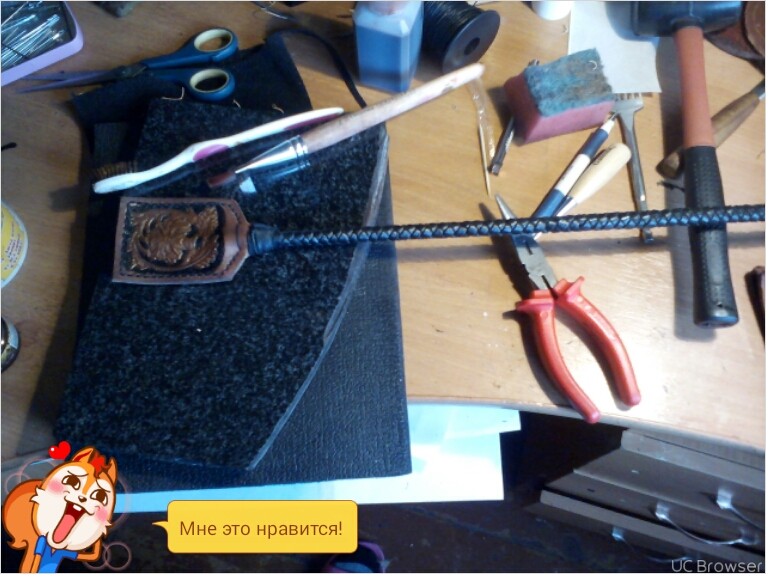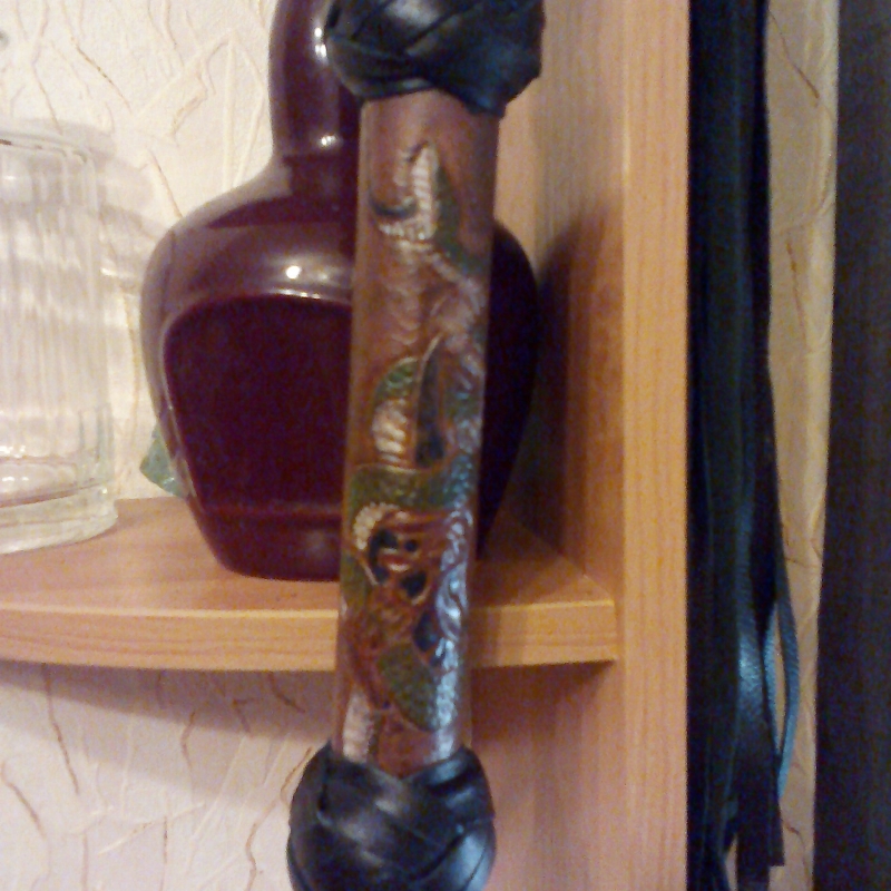 Мои работы.. Девятихвостка,Язык змеи,,. Длина хвостов 50 см,ручка с теснением 23 см.