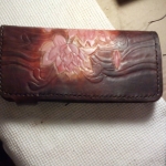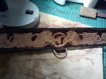 ошейник на заказ был сделан,рисунок по просьбе,сложность работы в том что теснение было сделано на узкой полоске кожи