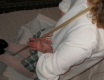 Тонкая трость. Дерево. Раньше служил частью подрамника для моих работ, а теперь служит...эээ...орудием воспитания. Оччччень болезненным,надо отметить.