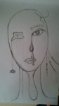 По задумке это разрез скальпелем вместо брови, сшитый нитками. Вот так вот мысль повернулась)
