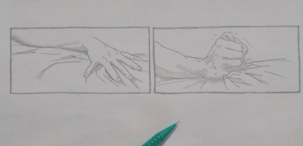 а мой воспалённый мозг выдаёт немного другой образ. в котором руки лишь передают те эмоции которые захватили героя, а вот причиной появления этих эмоций является нечто другое...